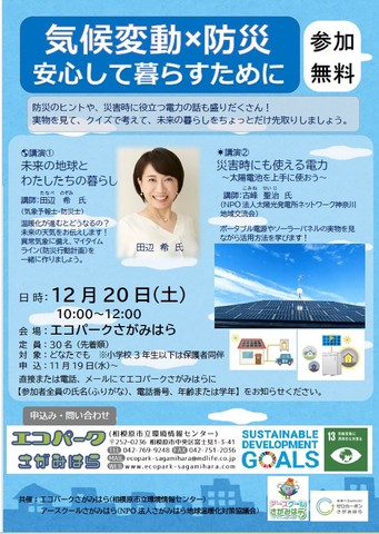 講演会「気候変動×防災 安心して暮らすために」をエコパークさがみはらと共催で行います。是非ご参加下さい。